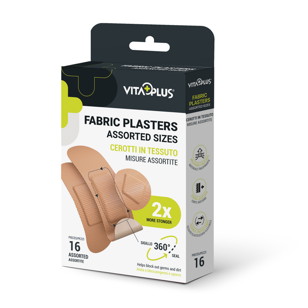 The VitaPlus Fabric Plasters offer durable and flexible protection for everyday cuts, scrapes, and minor wounds. Crafted from soft, breathable fabric, these plasters comfortably conform to the contours of the skin, allowing for natural movement while staying securely in place. The strong adhesive ensures reliable coverage, while the cushioned pad effectively shields wounds from dirt and bacteria, promoting faster healing.