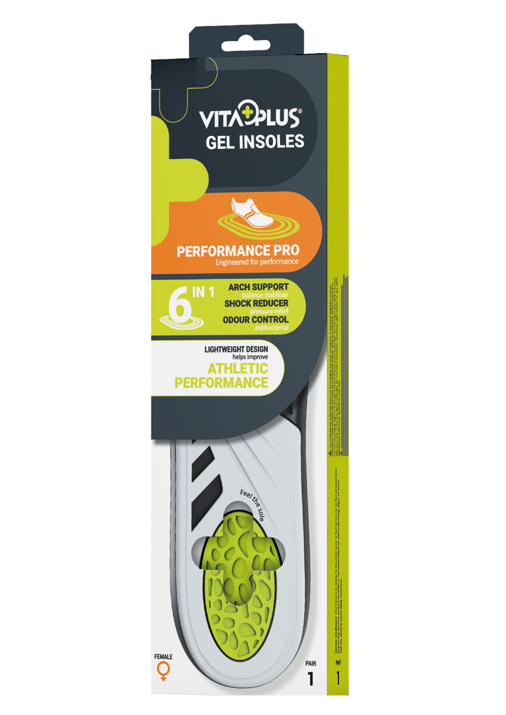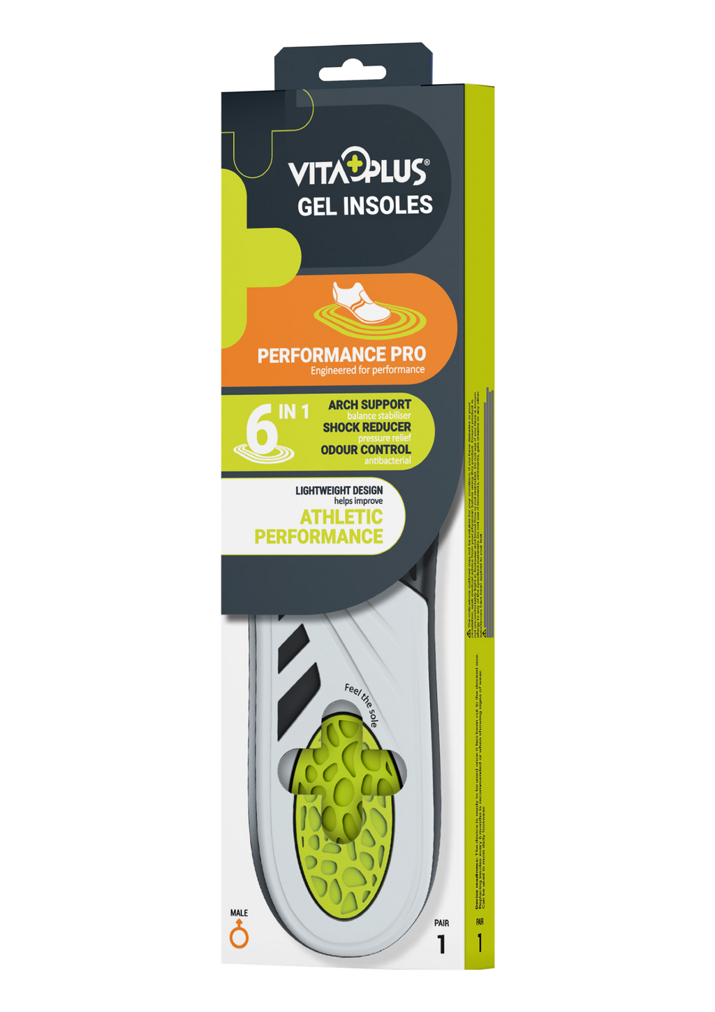 The VitaPlus Performance Pro Gel Insole is expertly crafted for individuals seeking peak performance and superior foot support during intense activities. Engineered with advanced shock-absorbing gel zones and a reinforced arch support system, the insole minimises impact, enhances stability, and alleviates strain, making it ideal for high-impact sports and demanding routines.