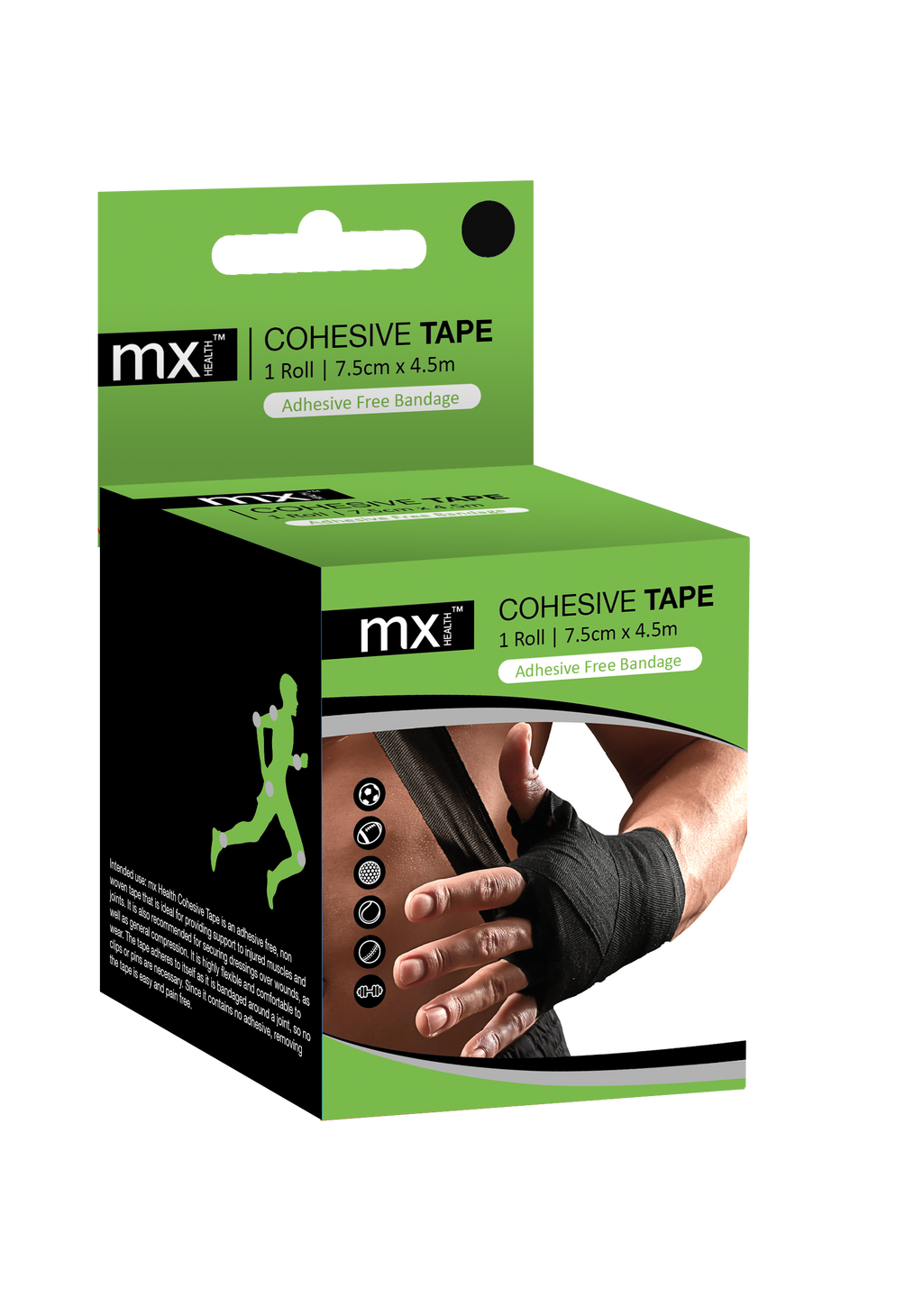 The mx Health Cohesive Tape is an adhesive-free, non-woven tape designed to deliver optimal support to muscles and joints. Its versatile application makes it ideal for securing dressings over wounds and providing effective general compression.