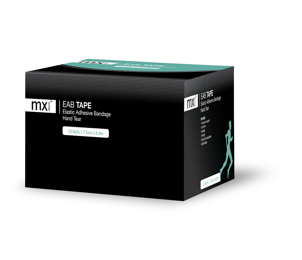 The mx Health Elasticated Adhesive Bandage (EAB) Tape is designed to offer exceptional stretch beyond standard adhesive strapping. This tape adheres directly to the skin, providing robust support for joints by wrapping securely around limbs. Ideal for athletes and individuals seeking superior joint stabilization, the tearable EAB Tape combines flexibility and durability for optimal performance and comfort.