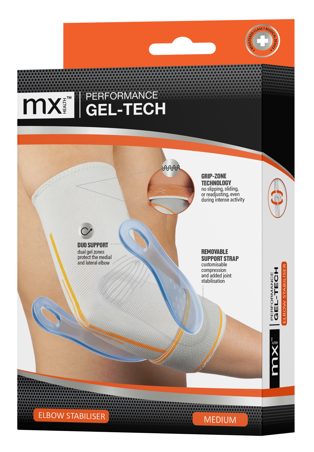 The mx Health Performance Gel-Tech supports range is suitable for moderate to high joint instability, soft tissue strain and post-injury recovery, making it ideal for sports activities, training, and daily use. The low-profile, ergonomic design allows each support to be worn discreetly under clothing, while reinforced edging and durable materials ensure long-lasting performance.