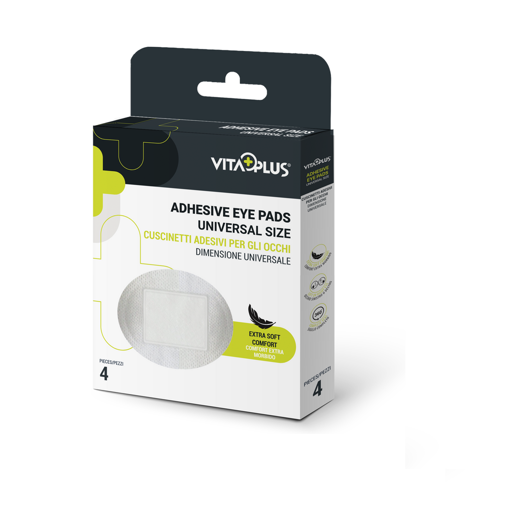 The gentle adhesive border ensures a firm yet comfortable seal, eliminating the need for additional tapes or bandages, while the breathable material reduces skin irritation. With easy application and a secure fit, the VitaPlus Adhesive Eye Pads are ideal for both professional medical settings and at-home care, offering reliable protection and peace of mind.