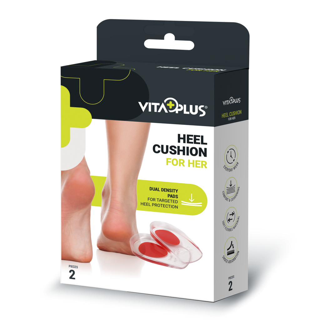 Its ergonomic design ensures a comfortable fit in most shoes, while the non-slip surface keeps the cushion securely in place throughout the day. Ideal for both casual wear and active use, the VitaPlus Heel Cushion enhances your comfort and support with every step.