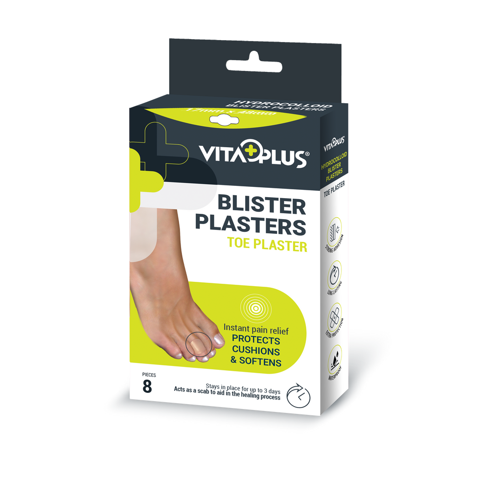 The VitaPlus Hydrocolloid Blister Plasters are designed to provide advanced protection and soothing relief for blisters. Using hydrocolloid technology, the plasters create a cushioning layer that shields blisters from friction while promoting faster healing.