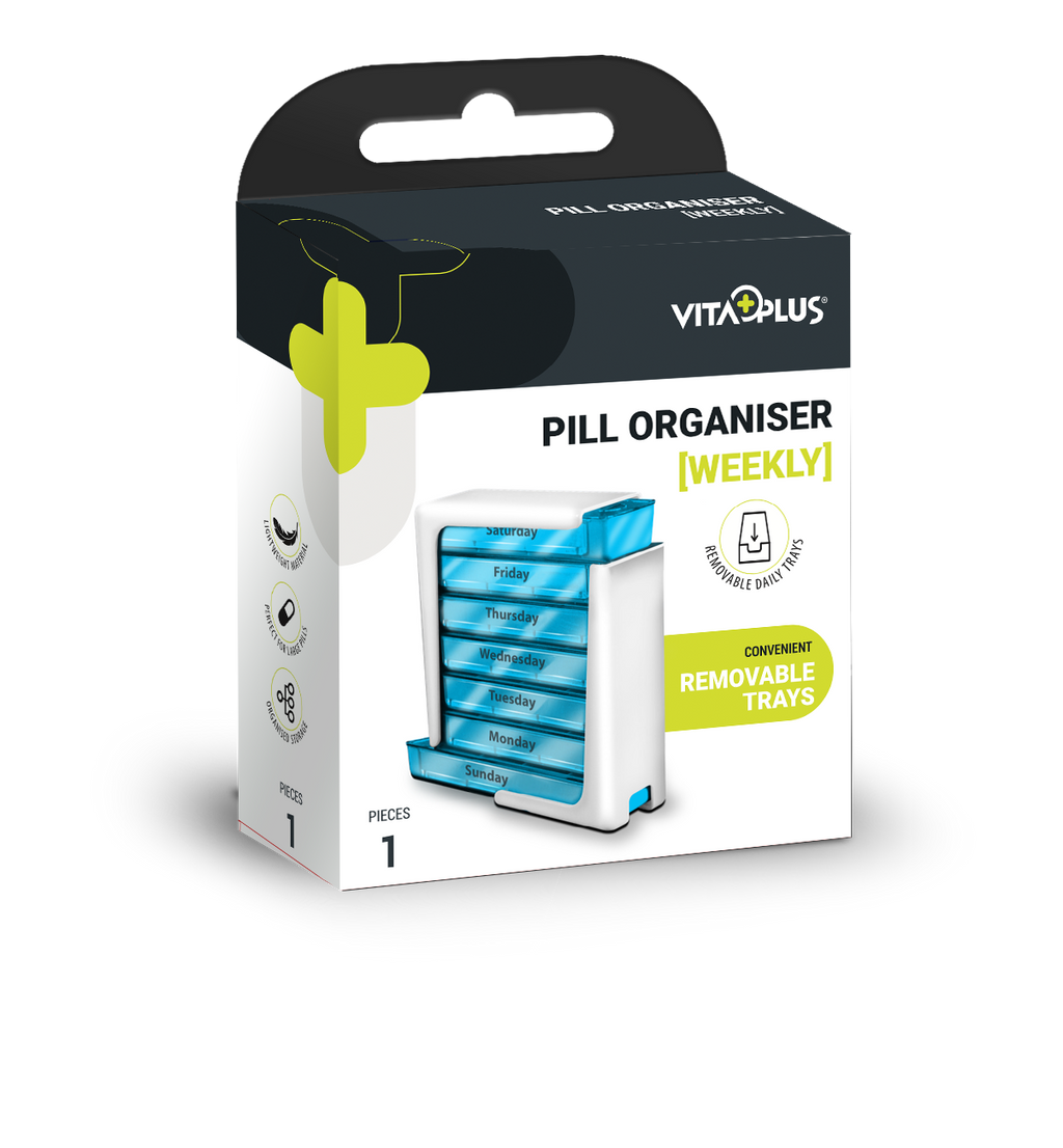 The VitaPlus Pill Organiser (Weekly) is an essential tool for efficiently managing your medication schedule. Featuring seven clearly marked compartments for each day of the week, this organiser simplifies your routine and ensures accurate dosing. Each compartment is spacious enough to hold multiple pills, making it ideal for those on complex medication regimens or taking daily supplements.